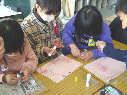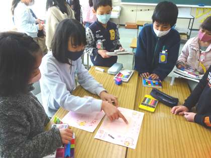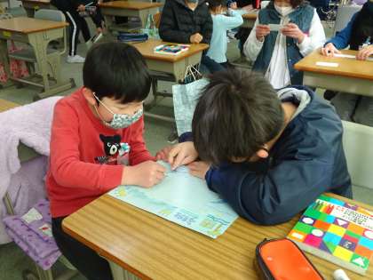 5年生の指示に従って団解散式で6年生に渡すプレゼントを作りました。