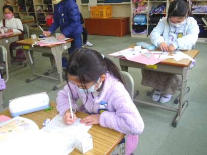 2月9日(火) 授業風景(2−2算数) 公開日 2021/02/09 更新日 2021/02/09 うのさとニュース 2年2組の算数では,「はこの形」の個別学習を進めていました。 今日は,工作用紙で作った6つの面を組み合わせて,さいころやはこの形を作る課題に取り組んでいる子がたくさんいました。