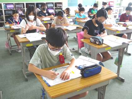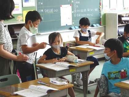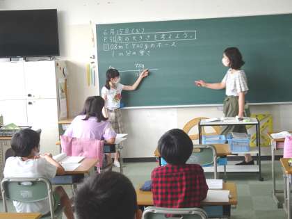 5年1組の算数では,小数の割り算の学習で,整数÷小数の計算で答えを求める文章題を考えていました。