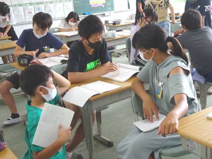 6月15日(火) 授業風景(6−2算数) 公開日 2021/06/15 更新日 2021/06/15 うのさとニュース 6年2組の算数では,割合を表す分数の学習をしていました。 図を使って立式し,分数で割る計算の仕方を考えていました。
