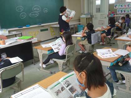 6月15日(火) 授業風景(3−1社会) 公開日 2021/06/15 更新日 2021/06/15 うのさとニュース 3年1組の社会では,自分たちの住んでいる東浦町について学習しています。 先日,東浦町のいろいろな施設の見学に行ってきましたが,今日は,自分が選んだ東浦町のいいところについて壁新聞にまとめる活動をしていました。 子どもたちは,何について紹介するかを決め,副読本やインターネットを使って紹介する事柄について熱心に調べていました。