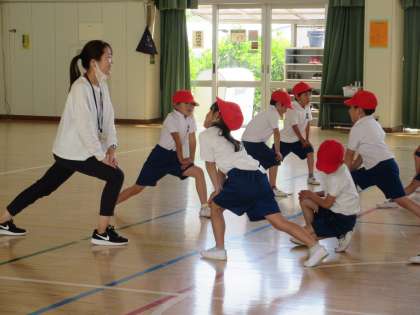 係の子が前に立って、みんなで声を出して準備体操をしました。