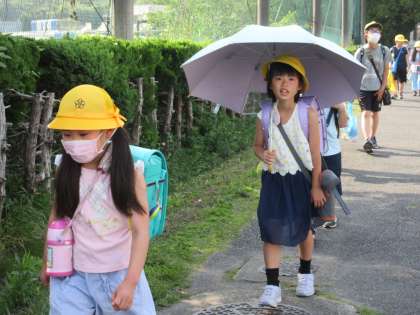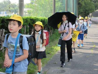 5月18日(木)熱中症対策 公開日 2023/05/18 更新日 2023/05/18 うのさとニュース 熱中症に気を付けながら生活する時期になりました。 登下校時は、日傘やクールタオルを使用しもよいことになっています。 日傘を使うときは、傘の使い方に気を付けてくださいね。