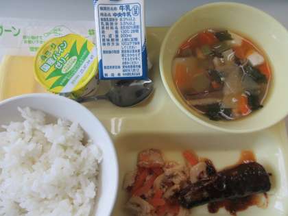 6月19日(月)給食の献立 公開日 2023/06/19 更新日 2023/06/19 うのさとニュース ・麦ごはん ・牛乳 ・かきまわしの具(鶏肉やにんじんの入ったまぜごはん) ・いわしの八丁味噌煮 ・はちはいじる ・パインゼリー