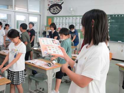 6月19日(月)5年生:外国語 公開日 2023/06/19 更新日 2023/06/19 うのさとニュース 教科の名前を英語で言う学習をしました。 道徳は、moral education。 体育はP.Eで、physicai educationの略・・・ 道徳は似てるけど、M.Eにはしない・・・