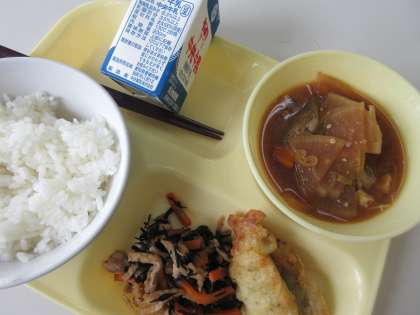 ・ごはん ・牛乳 ・あじフリッター ・切り干し大根とひじきの炒め煮 ・豚汁
