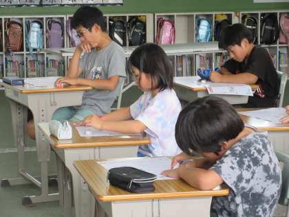 6月21日(水)5年生:国語 公開日 2023/06/21 更新日 2023/06/21 うのさとニュース 「言葉の意味が分かること」のテストをしていました。 問題は表と裏の両方です。 たくさんの問題がありますが、テストで時間の使い方の学習にもなっています。