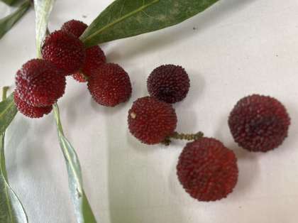 梅雨の時期に収穫できる真っ赤なやまももの実。