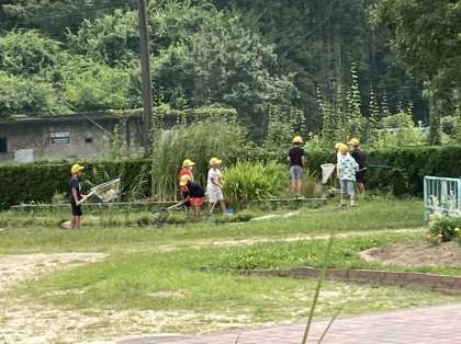 やんちゃパークで、生き物をとるのを楽しんでいます。