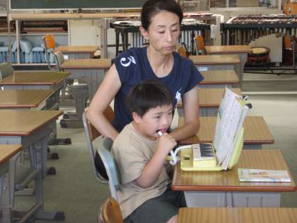 9月5日(火)うのはな・やまもも学級:音楽 公開日 2023/09/05 更新日 2023/09/05 うのさとニュース 鍵盤ハーモニカやオルガンで、音を出す練習をしました。 音楽室は冷房が効いて涼しく、学習に集中しやすいです。 楽器は違っても、リズムと音がうまく重なると楽しい雰囲気になります。