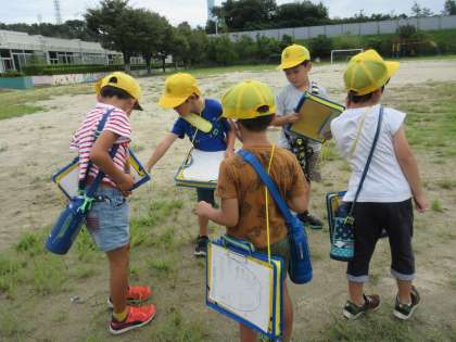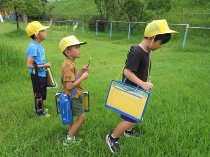 「うのさと むしたんけん」で、運動場で虫を探しました。