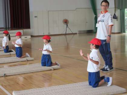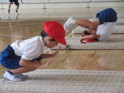 9月8日(金)1年生:マット運動遊び 公開日 2023/09/08 更新日 2023/09/08 うのさとニュース みんなで、マットを敷きました。 マット運動遊びで、転がったり前回りをしたり・・・ どんなふうに手を使うと、うまく回れるかな。