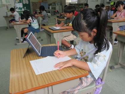 9月8日(金)2年生:算数 公開日 2023/09/08 更新日 2023/09/08 うのさとニュース 「100ます計算」を授業の始めに取り組みました。 タブレットには、答えが示されていて、それぞれで答え合わせをしました。 早く正確に計算できる力が付いていくことでしょう。