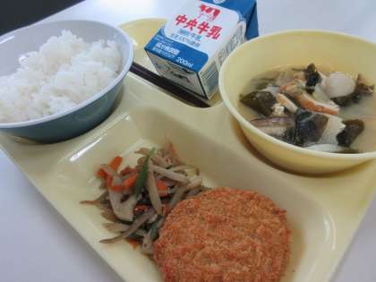 9月11日(月)給食の献立(ひがしうらリボーンの日) 公開日 2023/09/11 更新日 2023/09/11 うのさとニュース ・牛乳、 ごはん ・おじゃころ(おからの料理) ・ごもくきんぴら ・いなかじる