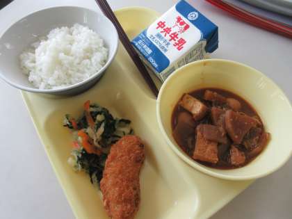 ・ごはん ・牛乳 ・ささみおおばばいにくフライ ・にみそ ・こまつなのおひたし