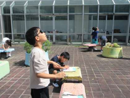 太陽は直接見ると目に悪いので、遮光板を使って見ました。