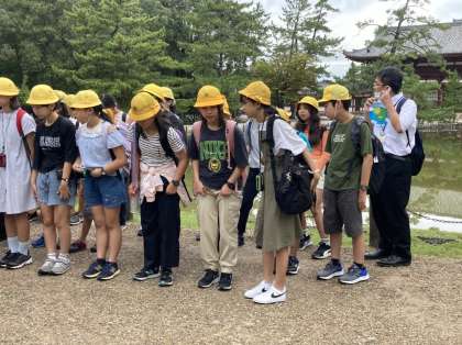 東大寺に着きました。 鏡池の前で、写真を撮りました。