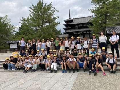 14時30分に法隆寺を出発し、学校へ向かいます。