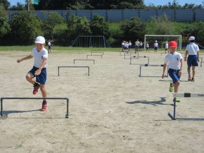 9月25日(月)3年生:体育 公開日 2023/09/25 更新日 2023/09/25 うのさとニュース ハードル走の運動をしました。 3歩のリズムと、またぐときの姿勢がポイントです。 さわやかな秋空の下、元気に運動しました。
