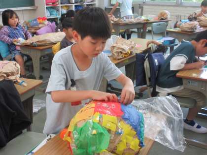 5月8日(水)2年生:図工 公開日 2024/05/08 更新日 2024/05/08 うのさとニュース くしゃくしゃぎゅっ・・・ 紙の袋を使った工作です。 いろいろな材料を使って、飾り付けをしました。