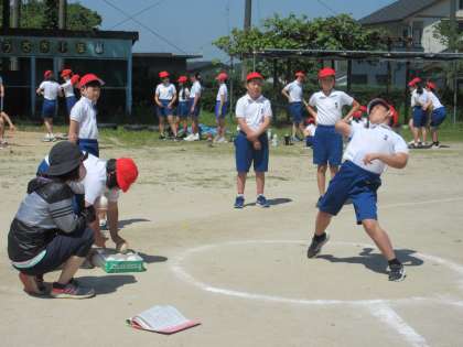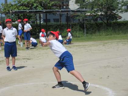 ソフトボール投げ、体の成長とともに投げ方もうまくなっています。