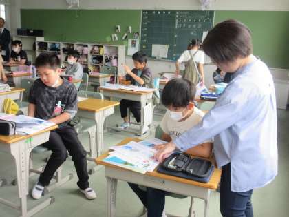 5月20日(月)5年生:理科 公開日 2024/05/20 更新日 2024/05/20 うのさとニュース 「天気の変化」のテストが返され、テスト直しをしました。 今日から、教育実習の先生が5年1組に入ります。 さっそく、理科の授業の観察をしていました。 約4週間ですが、卯ノ里小学校でたくさん学んでください。
