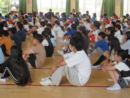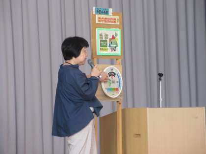 朝会の中で、養護教諭の先生から熱中症についての説明がありました。