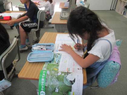 たまごの観察をしたり、理科ノートに記録したりしています。