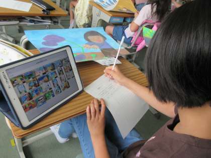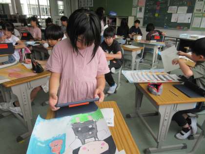自分の作品の写真を電子データで送り、タブレット画面で鑑賞することができます。