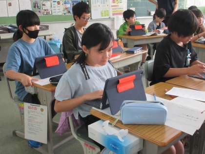 5月24日(金)6年生:国語 公開日 2024/05/24 更新日 2024/05/24 うのさとニュース 「時計の時間と心の時間」・・・すてきなタイトルです。 国語辞典で言葉の意味調べをしました。 終わったら、タブレットを使って学習しました。