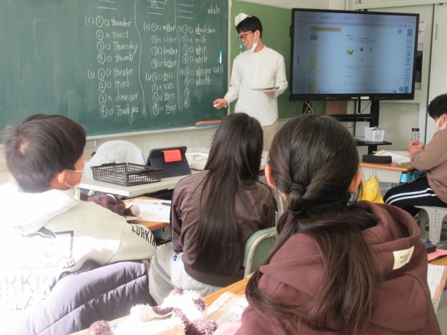2つの文字で表す音に慣れよう・・・「th」「ch」「sh」の発音について学習しました。実際に聞いて、確認をしました。日本語とは違う発音の仕方です。