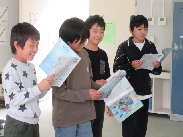 「ゆき」という曲は、「しんしん」という言葉がいっぱい。「しんしんしんしん」「しーんしん」「しんしーん」など、いろいろなリズムや言い方を変えて、グループごとに発表しました。