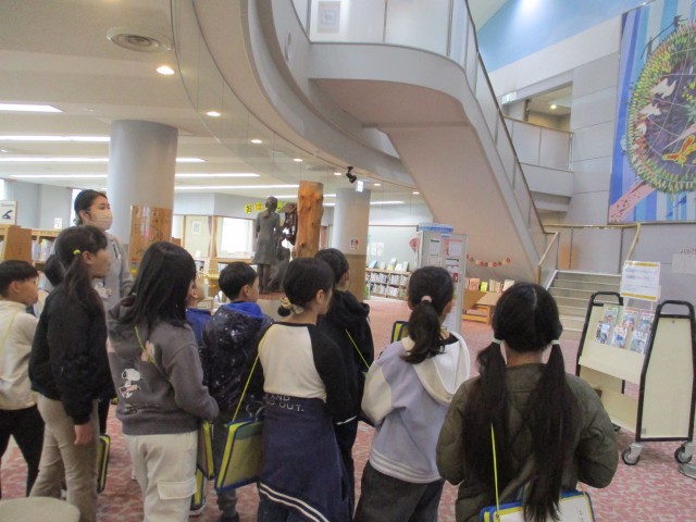 バスに乗って、中央図書館とうのはな館の見学に行きました。3年生から始まった社会科の学習。施設を実際に見学することは、社会科の学習の楽しさです。