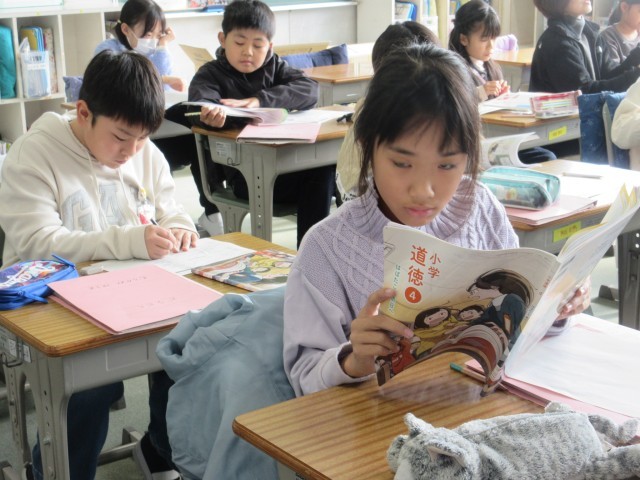 2学期の道徳の学習も、終わりが近づいてきました。2学期は、どんなことを学習したかな。振り返りシートを見たり、書いたりしました。