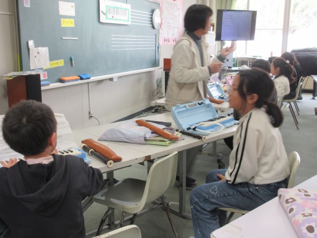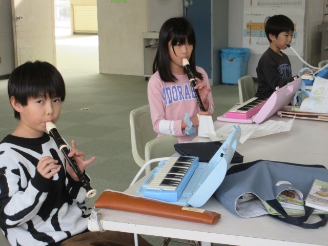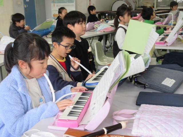 「メロンの気持ち」という曲で、きれいな音色が聞こえてきました。けんばんハーモニカやリコーダーの音が重なって、きれいでした。