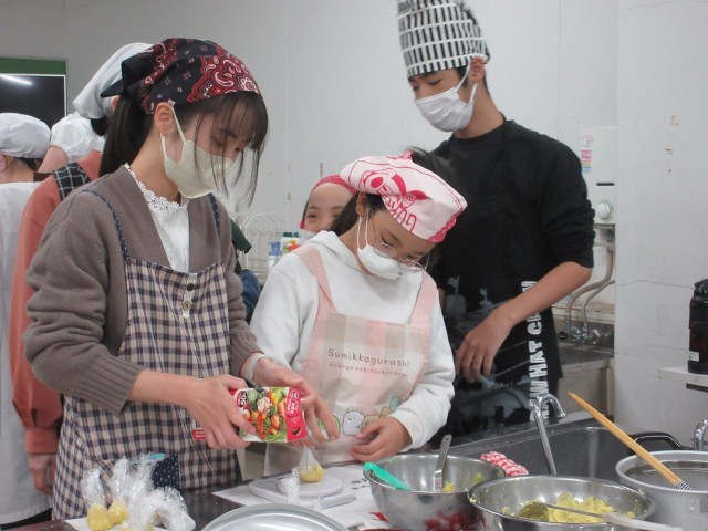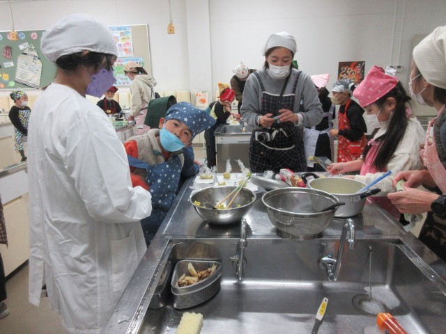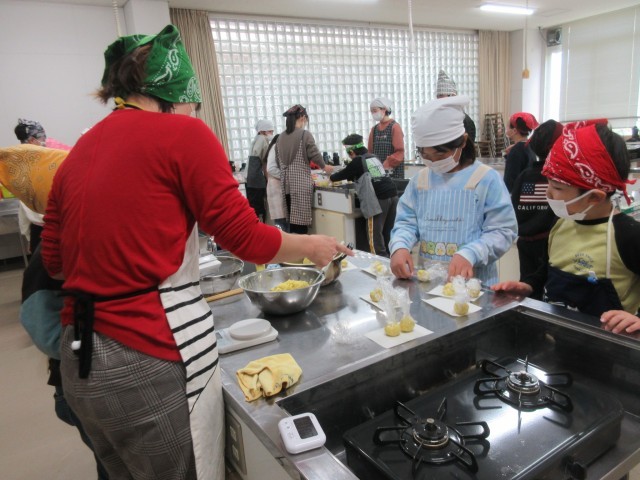 サツマイモを使って、いもきんとんを作りました。地域の方の畑でいも掘りをさせてただいたサツマイモ。あまくておいしい味・・・みんなで協力した気持ちも入っています。