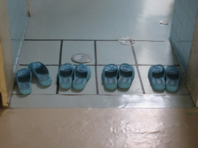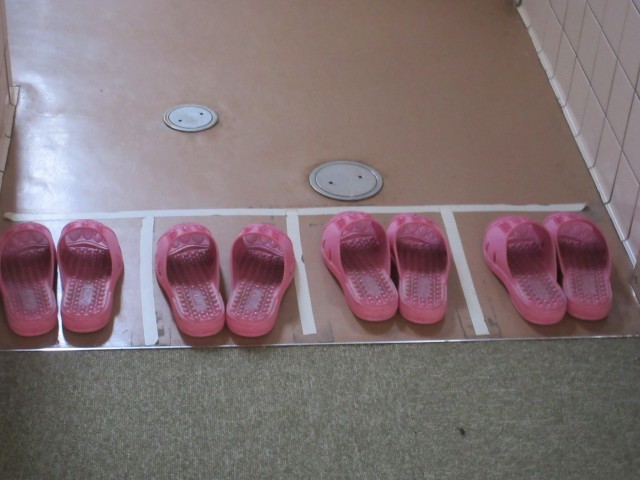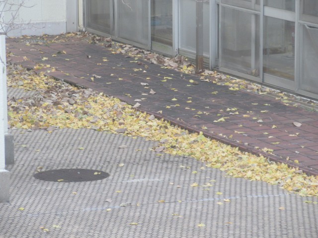朝、◯階のトイレのスリッパがそろっていました。見た目もよいし、スリッパがそろっていると次に使う人が気持ちよく使えます。イチョウの葉も落ちましたが、風の力でそろっているように見えます。