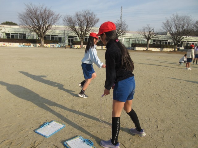 「チャレンジ なわとびカード」に取り組んでいます。前跳び、交差跳び、二重跳びなど、どんどんチャレンジしよう!今日は太陽の日差しがあって、昨日よりも暖かいです。