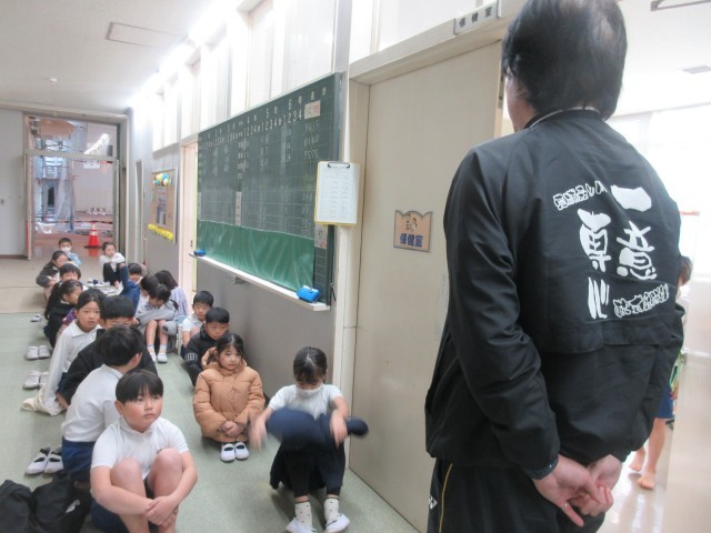 今日は寒い日になりました。運動場を元気に走っている1年生、元気な声が聞こえてきました。走った後は整列・・・上手になりましたね。