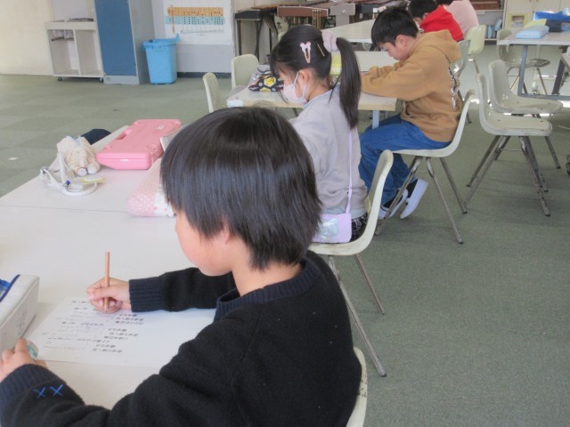 1~5年生が、にこにこ団のお別れ会リハーサルをしている時間、6年生は授業でした。卒業までの登校日カレンダーは19日。20日をきりました。一日一日を大切に過ごしていこう。