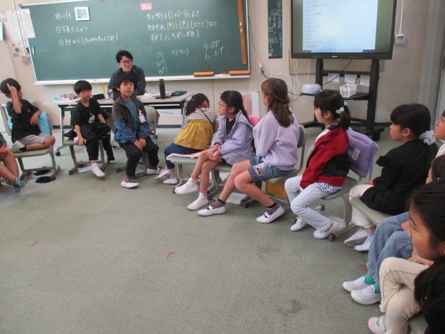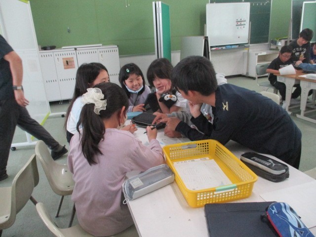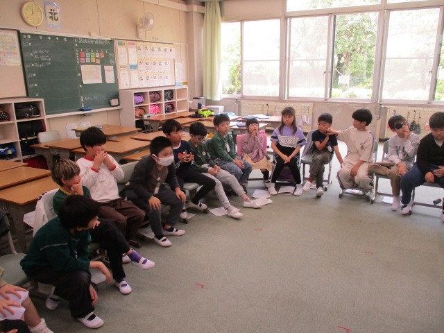 5年国語の様子です。「銀色の裏地」の読解をしています。自分の考えを堂々と伝えたり、相手の意見をしっかり聞いたりと一生懸命学び合う姿が見られました。