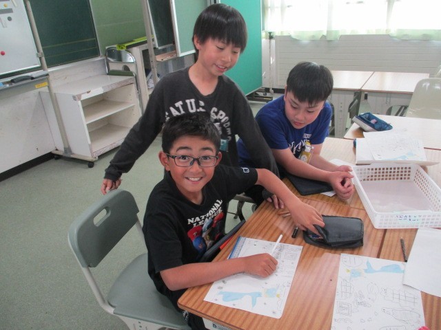 5年生がにこにこ団結成式・団旗披露式に向けて準備を進めています。よい団旗のデザインになるよう話し合いながら作業を進めていました。
