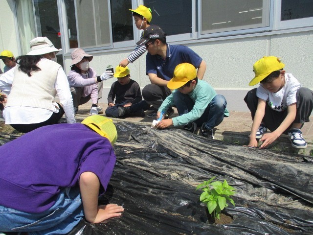 本年度も、うのやま農園で夏野菜を育てます。今日は苗植えをしました。