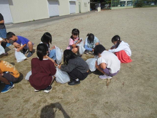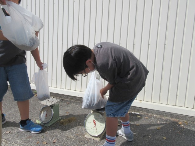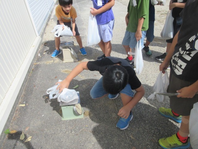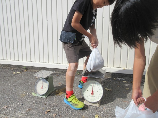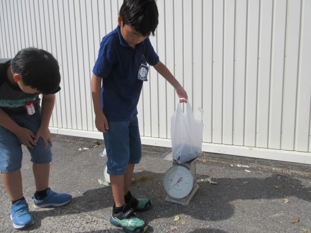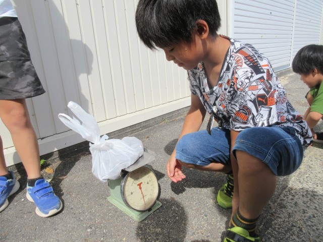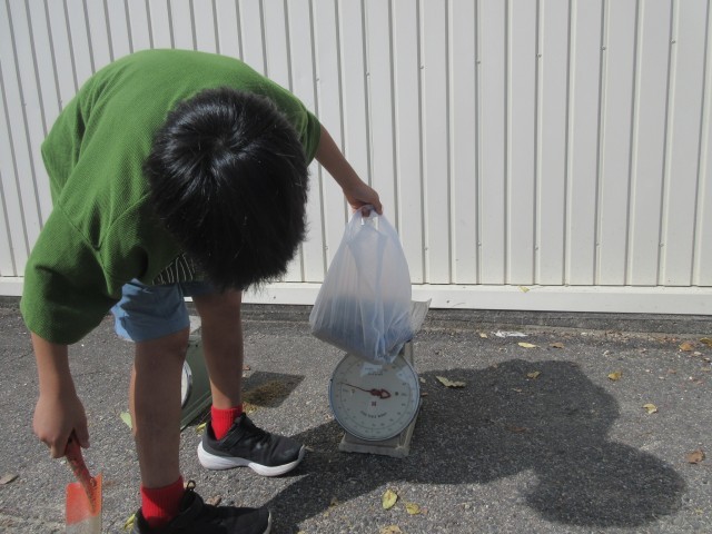 算数では、重さの学習をしています。今日は、すなで1キロの重さをつくりました。
