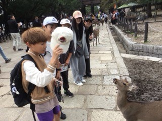 奈良公園で分散研修です。