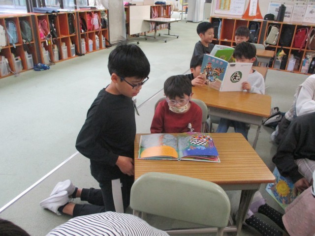 4年生が2年生に読み聞かせをしました。