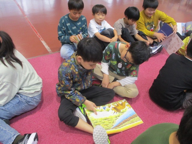 お兄さん、お姉さんに本を読んでもらって、2年生はとても嬉しそうでした。
