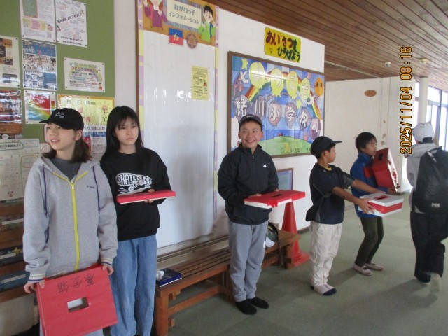 SDGS環境省の自治の活動で、今週いっぱい赤い羽根募金運動をしています。朝の昇降口から元気な声が聞こえてきます。残り二日、どうぞご協力をお願いします。
