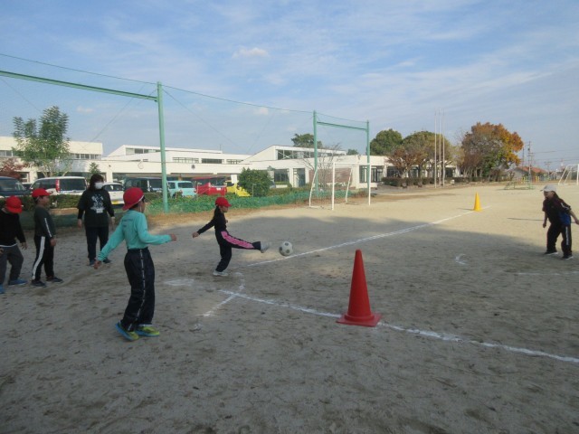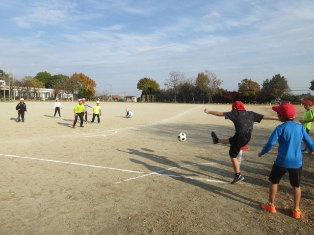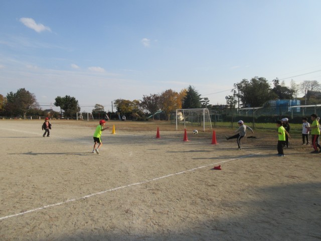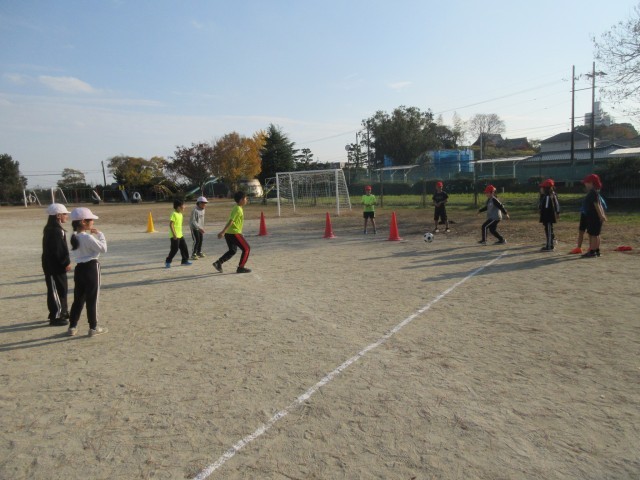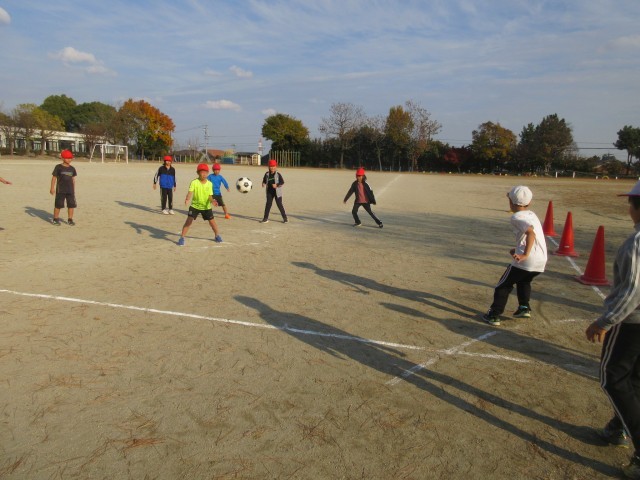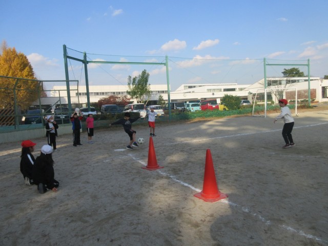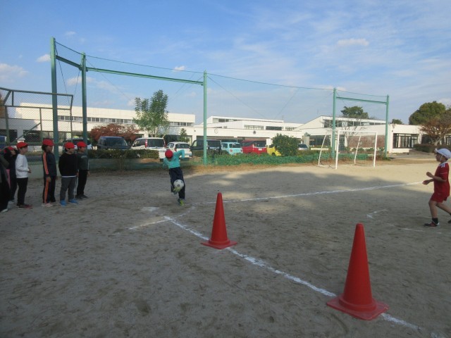 体育では、キックベースをしています。今日は試合をしました。ボールをしっかり見て、けったり、とったりすることができました。
