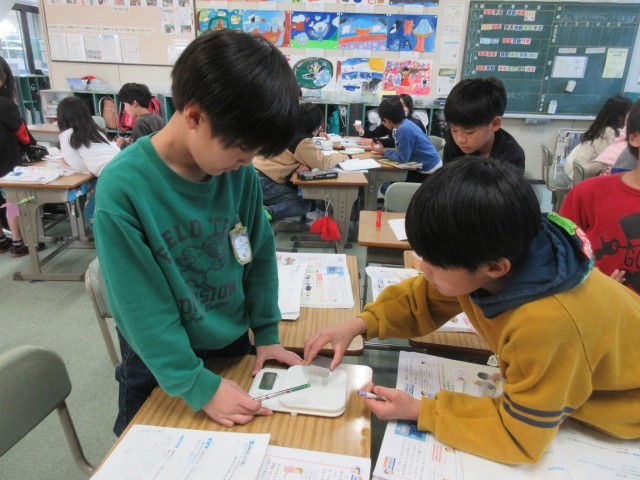 今日も理科で重さの学習をしました。今日は、体積が同じなら、重さは同じなのか実験をして調べました。
